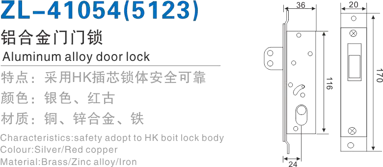 品名:铝合金门门锁 型号:ZL-41054 ( 5123 )