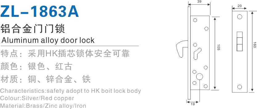 品名:铝合金门门锁 型号:ZL-1863A