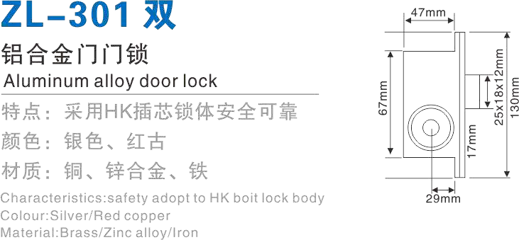 ZL-301 双 铝合金门门锁