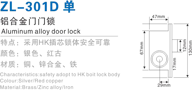ZL-301D 单 铝合金门门锁