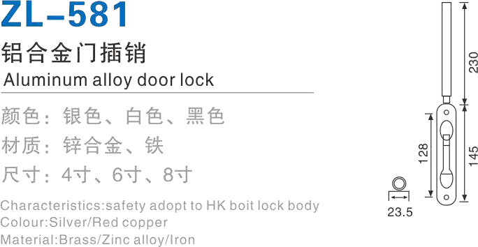 品名:铝合金门插销 型号:ZL-581